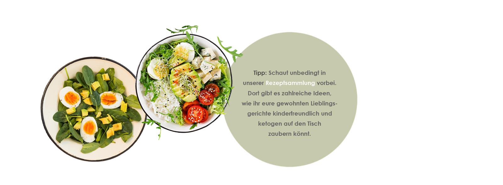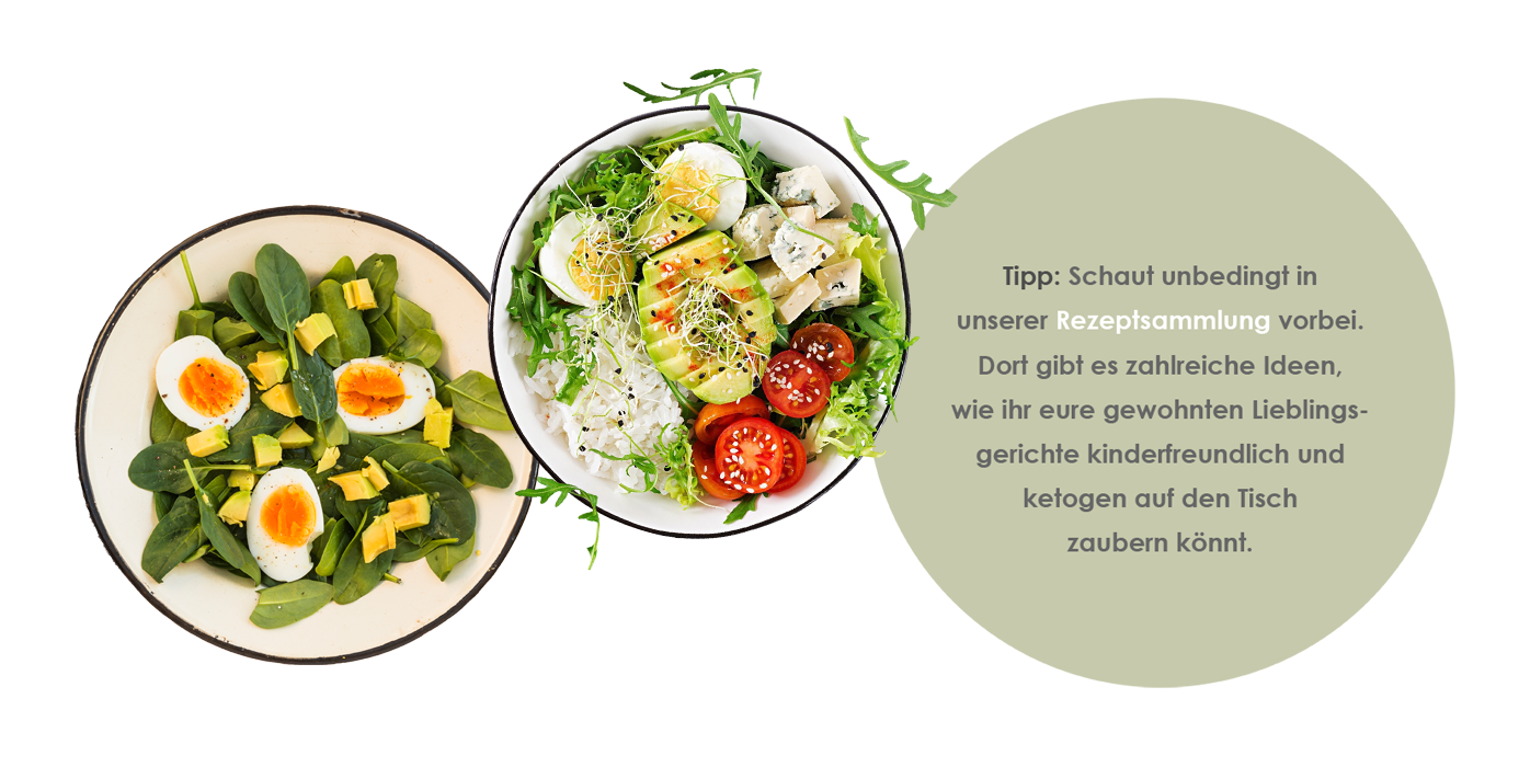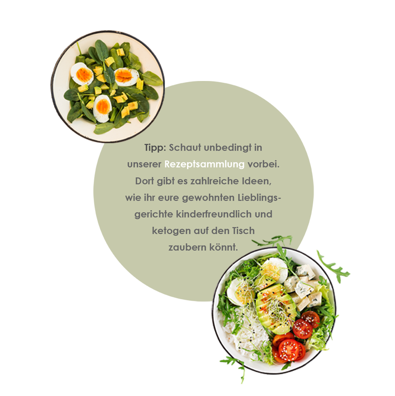 Vergesst nicht, genügend gesunde Fette (z. B. Butter, Sahne, Kokosöl oder Olivenöl) einzuplanen, damit das ketogene Verhältnis stimmt. Oft reicht ein kleiner „Schubser“ in Form von zusätzlicher Butter oder Sahne, um eure Lieblingsrezepte aufzuwerten. Hier empfehlen wir euch unbedingt, sofern ihr die ketogene Ernährung aus therapeutischen Gründen durchführt, mit eurem Arzt zu sprechen und euch Produkte von Kanso und Nutricia verschreiben zu lassen. Hier gibt es beispielsweise Ketomargarine die ihr super auf Brot oder jedem Gericht unterbringen könnt oder auch Fett in Pulverform. Dadurch könnt ihr auch unterwegs wunderbar Gerichten die nötige Portion Fett unterjubeln.